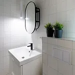 책상, 실내 온도 조절기뿐만 아니라 작은 부엌도 있습니다. 모든 욕실에는 개별 변기, 욕조, 샤워 제공됩니다.